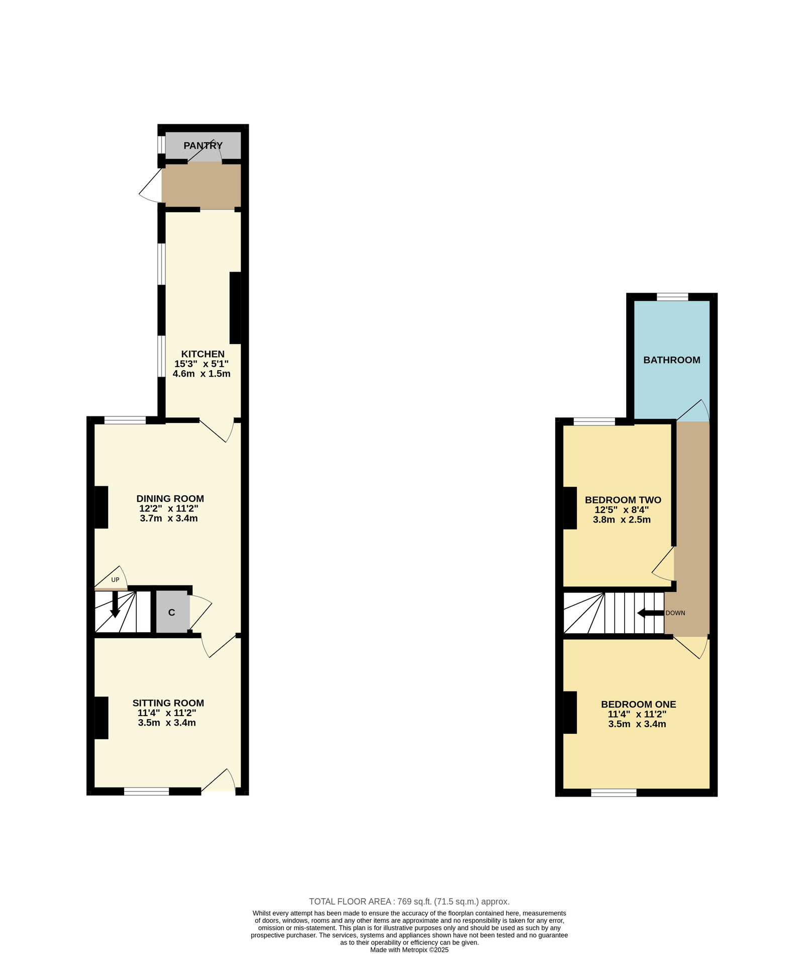 The property is neutrally decorated, with two spacious reception rooms and a modern fitted kitchen. Two good-sized bedrooms are on the first floor, along with a family bathroom.