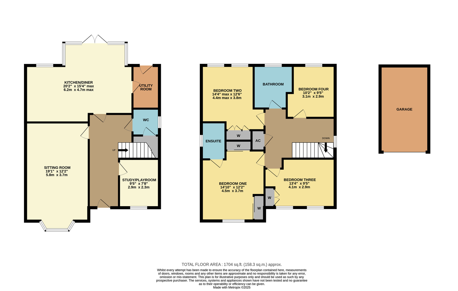 Internally, the property offers spacious and bright accommodation extending to approximately 1,465 square feet, excluding the garaging. A central hall leads to a WC, a study/playroom, a bay fronted sitting room, and to the rear of the house, a high specification kitchen/diner with direct garden access through a glazed bay. The kitchen has a full suite of integrated appliances and granite work surfaces. There is also a useful utility room.