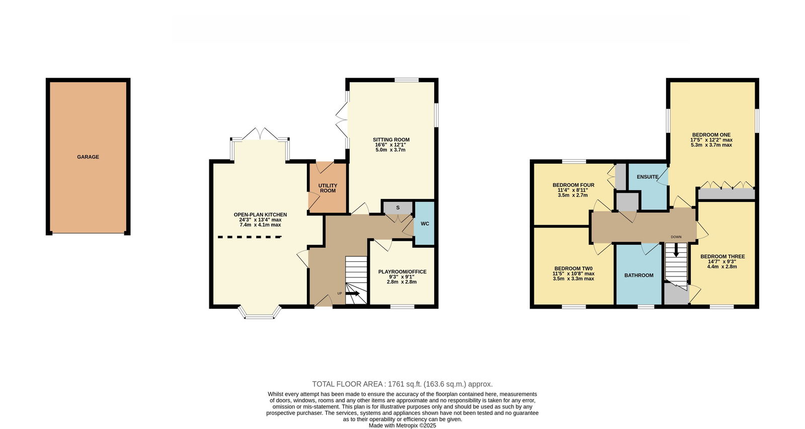The accommodation comprises an entrance hall with a useful cloak cupboard, a playroom/office, a beautiful light-filled sitting room with patio doors, and an open-plan ‘living’ kitchen featuring a second set of patio doors leading out to the rear garden. The kitchen is contemporary, with integrated appliances that include an eye-level double oven, gas hob, fridge, freezer, and dishwasher. There is a useful utility room with a door to the rear of the property and a separate downstairs w.c.
