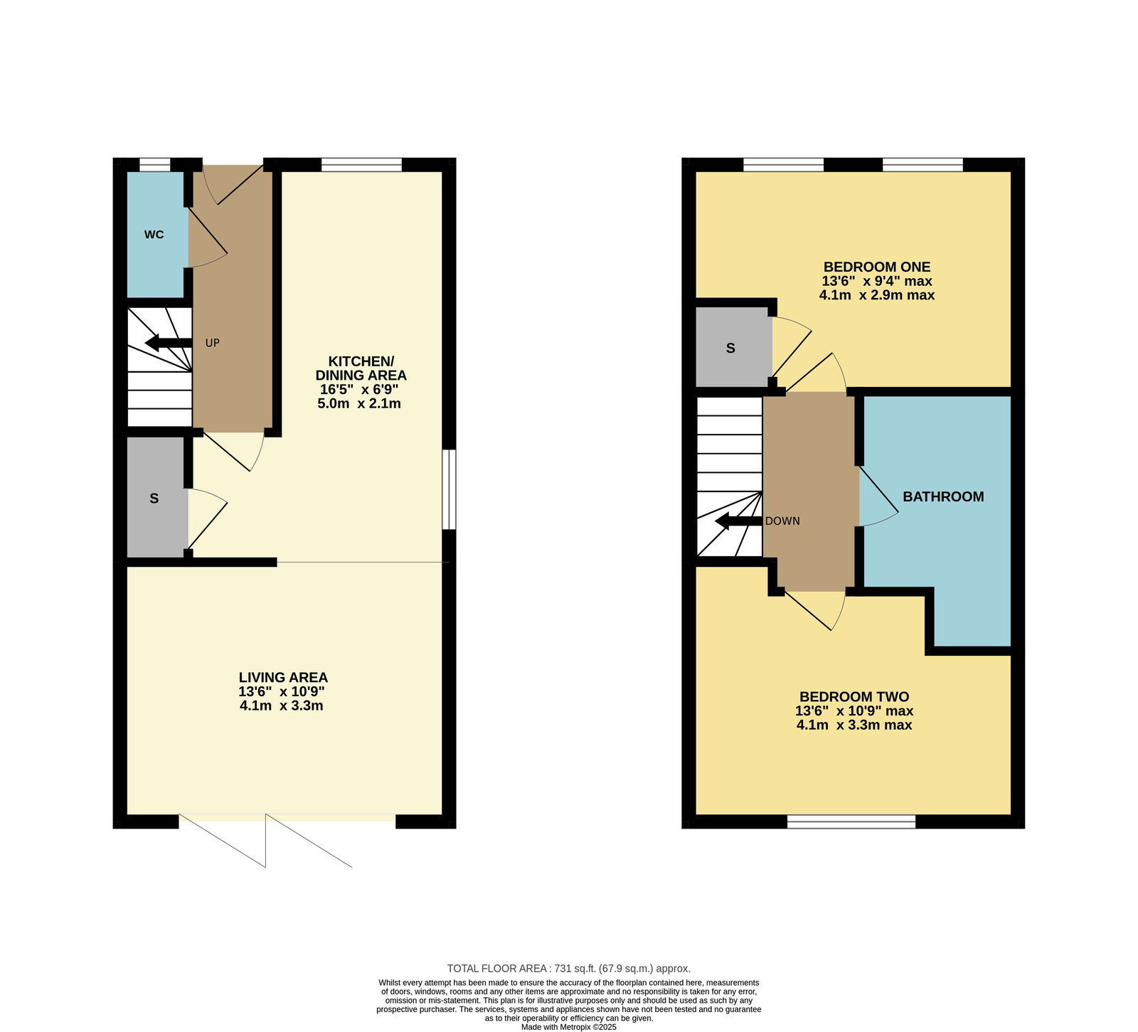 The floor area measures approximately 731 square feet, featuring a spacious and light-filled contemporary interiors laid out over two floors.