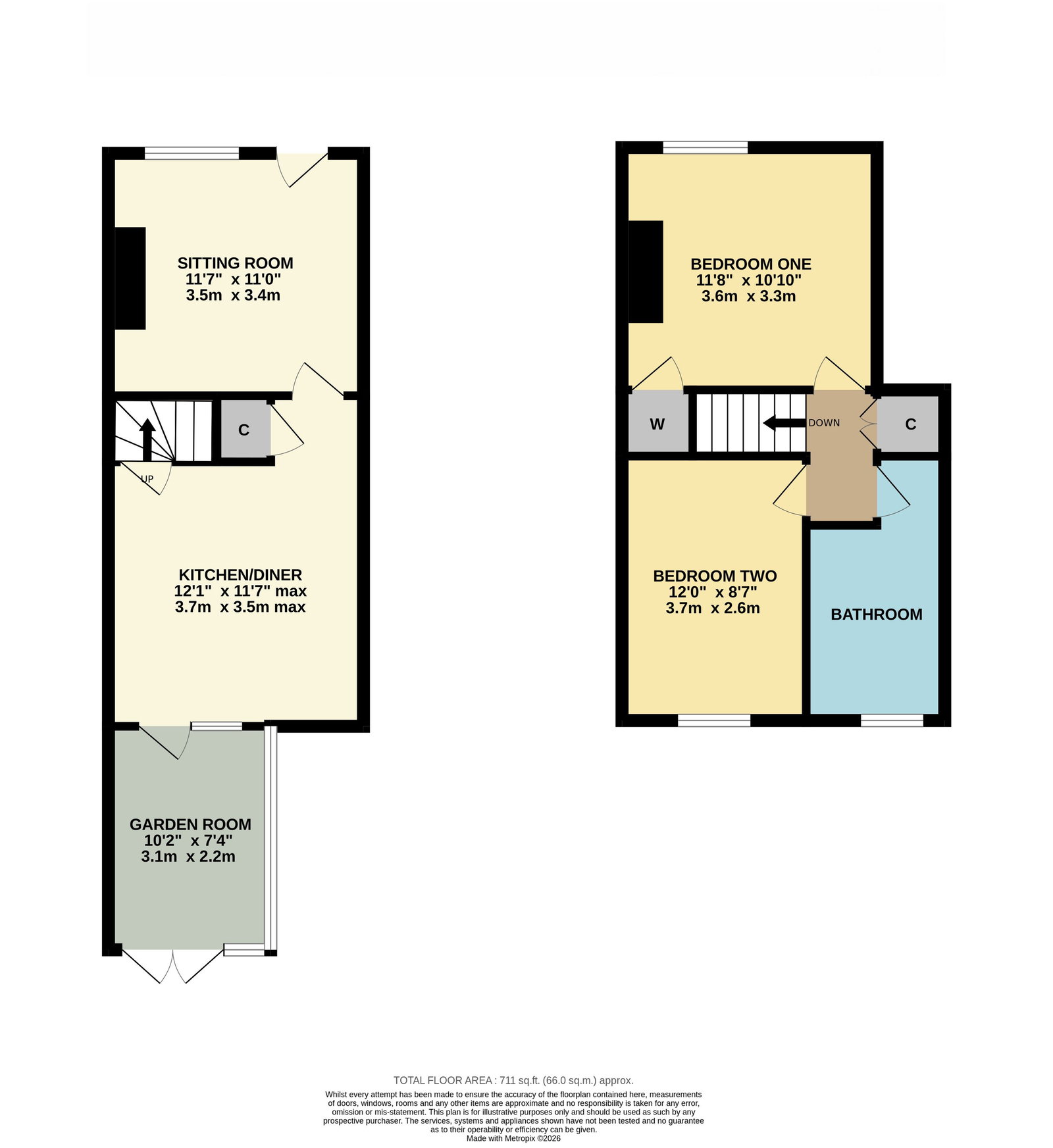 Two good-sized bedrooms and a family bathroom