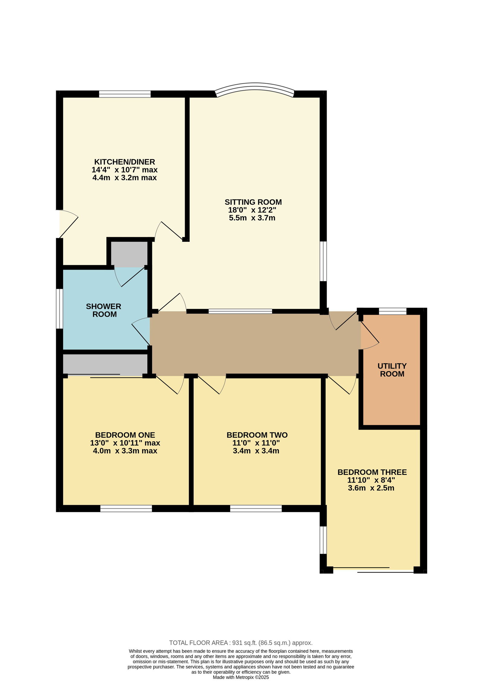 The spacious living accommodation extends to approximately 931 square feet. Situated in a generous plot, there are lawned front and rear gardens, and a private driveway.