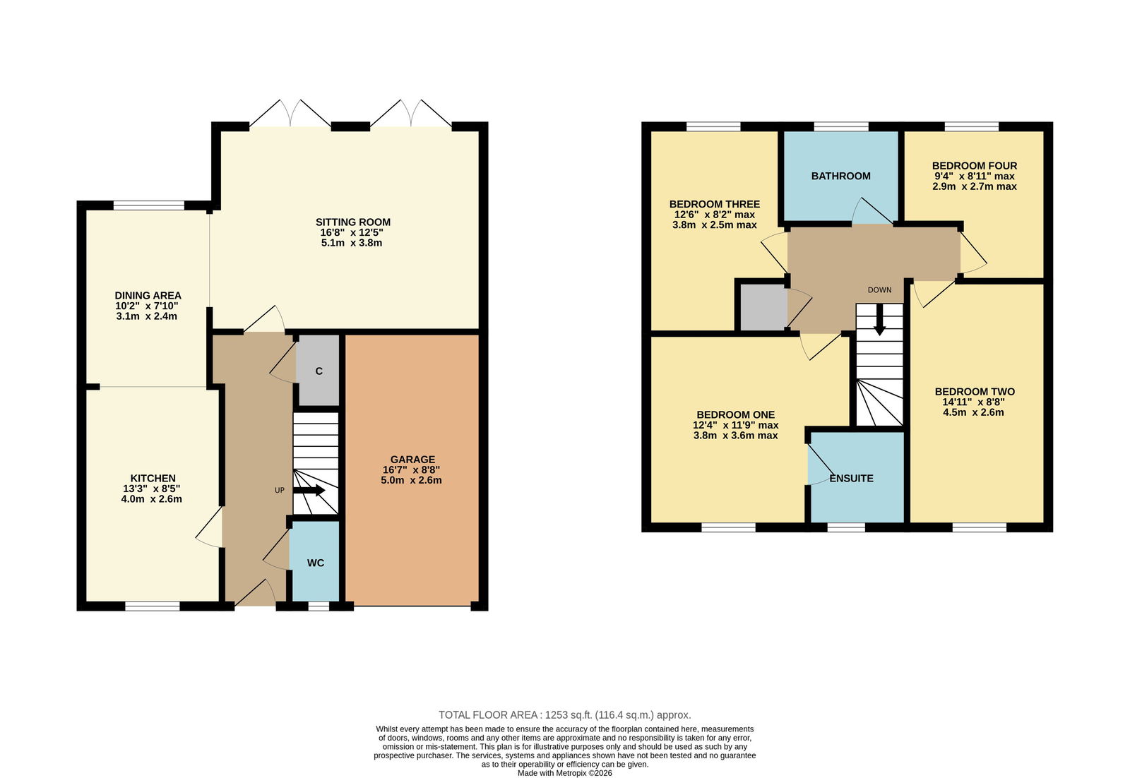 Four bedrooms (three doubles) and two bathrooms